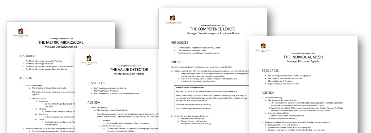 Since you'll be meeting often with your manager and possible a mentor during your value journey, you may benefit from the agendas provided below. There are two versions of each agenda. The one with employee notes guide you in preparing for, leading, and following up on discussions with your manager. The other is the agenda to provide your manager before the discussion.